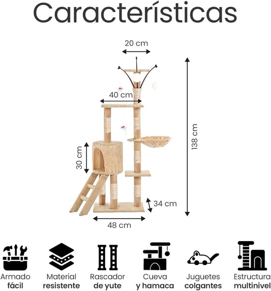 Árbol Trepador y Rascador para Gatos, Torre de Actividades de Varios Niveles.