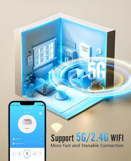 Comedero Automático para Gatos con Wi - Fi 5G, Adecuado para Dos Gatos/Perros Pequeños y Medianos.